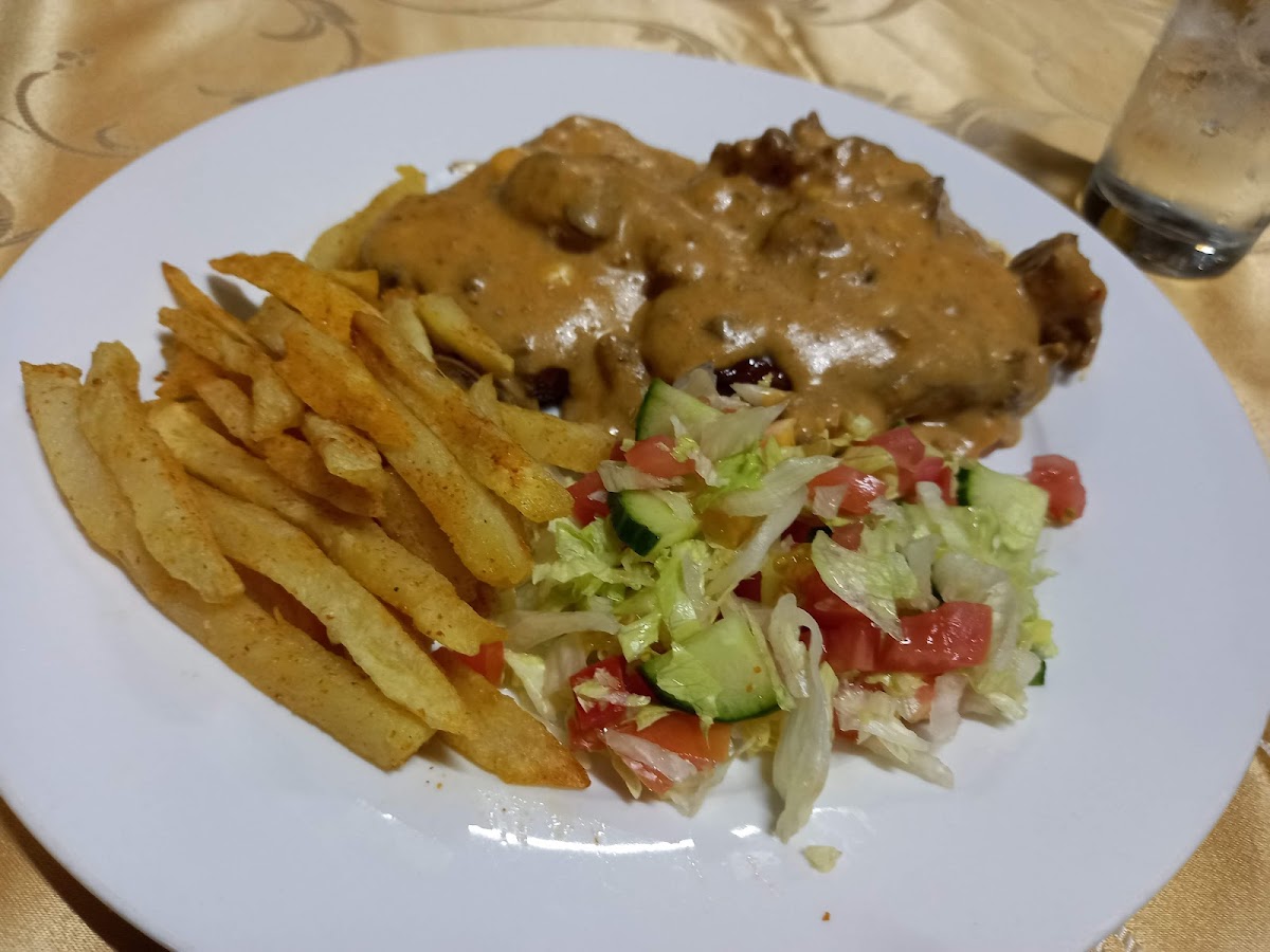 Die Ouwerf is an absolute gem in Lichtenburg — warm, welcoming, and full of character. The owners and staff are incredibly friendly and make you feel right at home from the moment you arrive. It’s the kind of place where the service feels personal, not just polite. The menu is well-priced with generous portions, making it a go-to spot whether you’re in the mood for a relaxed meal or something more hearty. And if you’re ordering a steak (which you definitely should), don’t skip the 'Mamma Sous' — it’s rich, flavourful, and takes the whole dish to the next level. All in all, Die Ouwerf delivers on good food, genuine hospitality, and excellent value. Highly recommended if you’re in town.