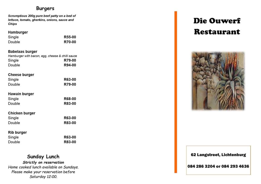 Die Ouwerf Restaurant Menu
